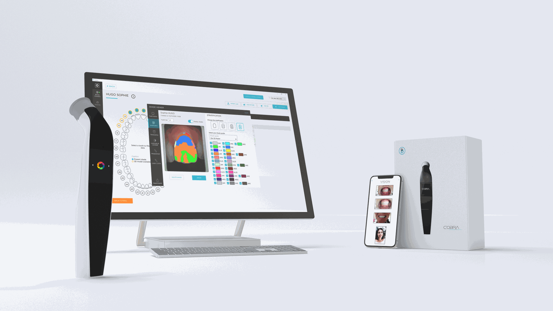 - Leg de tandkleur vast met Cobra; Vision schrijft de kleur direct weg bij de patiënt.